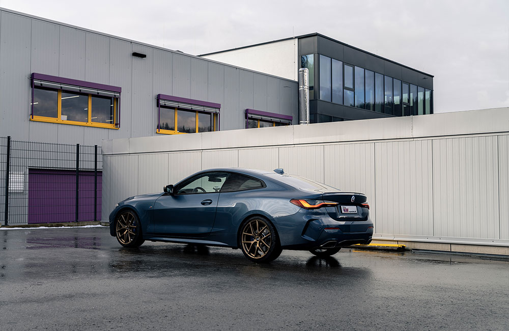 Une suspension filetée est le complément parfait pour les modèles de la BMW Série 4 G, car elle permet de régler individuellement la hauteur du véhicule et d'obtenir ainsi une tenue de route optimale. Par rapport à un châssis sport normal, le châssis sport réglable en hauteur offre un réglage en continu de la hauteur, ce qui permet une adaptation plus précise aux différentes conditions de conduite. L'abaissement peut ainsi être adapté exactement aux besoins et au style de conduite du conducteur, ce qui se traduit par une dynamique de conduite améliorée et un plaisir de conduite accru.