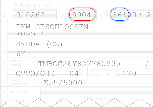 También puedes seleccionar tu coche por Número de clave del fabricante (HSN) o Número de clave del tipo (TSN). Los encontrarás en tu documento de registro del vehículo o en tu certificado de registro Parte I.